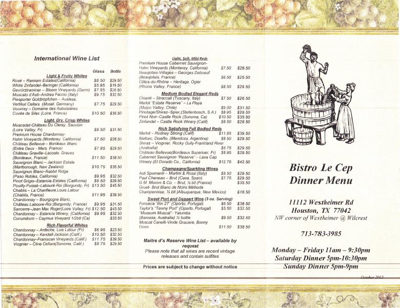 Bistro le Cep is supposed to be a French restaurant. In my opinion, other than its name, Bistro le