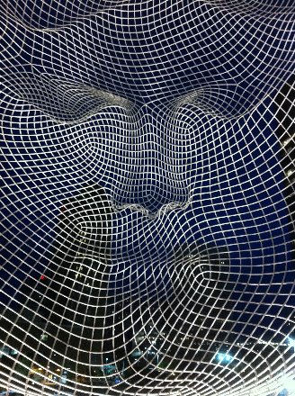 If you are visiting Calgary, you should make a trip to the city’s downtown to see the 12-meter tall metal frame sculpture, titled Wonderland, which is located in front of the Bow Tower. This sculpture, created by designer Jaume Plensa, attracts lots of visitors to take pictures of it from many different angles. Though many people have taken pictures of the sculpture from outside, the deep secret of the sculpture is actually lying inside of the Wonderland. Even if you are inside of the sculpture, you may not be able to see the magic of the sculpture. To see the magic, you need to take a picture from inside with your camera focusing on the nose of the sculpture. Once the picture is taken, you may look at it…. then you would appreciate the magic of the sculpture. You should also try doing this at night; and you would see a different picture, with different photographic effect forming by the surrounding lights, of t