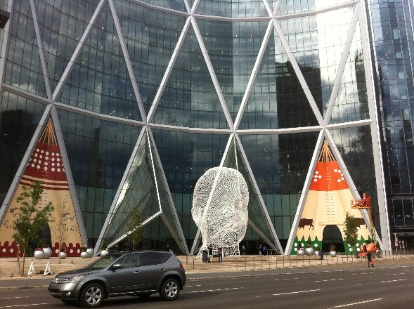 Wonderland sculpture, in front of the Calgary’s Bow Tower